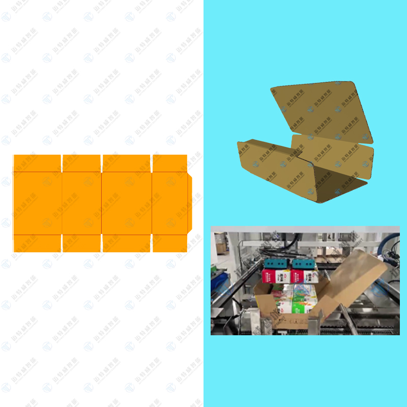 ◆ 裹包機(jī)具備自動(dòng)取料成型,自動(dòng)理料,目自動(dòng)裝物料,噴膠自動(dòng)上蓋等功能